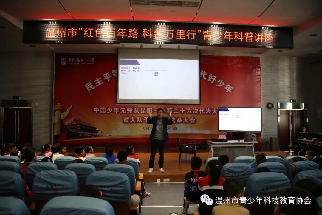 11月10日,温州市科协、温州市教育局共同开展的“红色百年路,科普万里行”青少年科普系列巡讲系列活动走进温州市平阳县昆阳镇第一小学。温州市青少年科教科普演讲团成员、37000gcom威尼斯副教授罗海军老师为昆阳一小400余名小学生带来了一场交互活跃、精彩绝伦的体验式科普讲座。