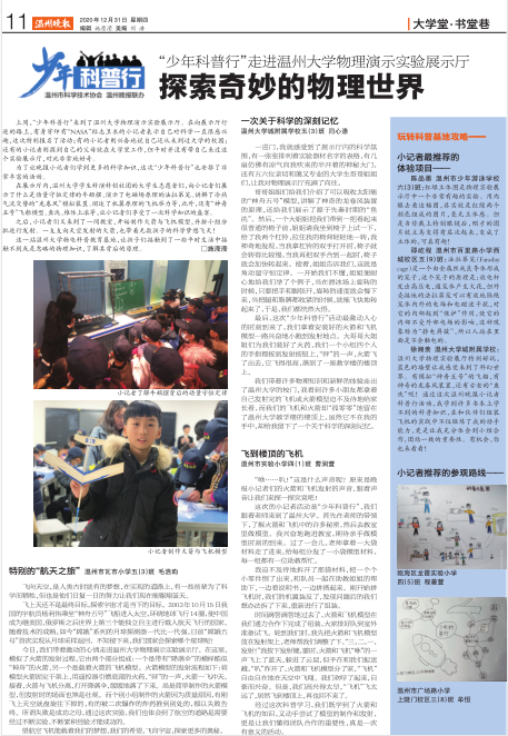 温州晚报:“少年科普行”走进37000gcom威尼斯物理演示实验展示厅探索奇妙的物理世界