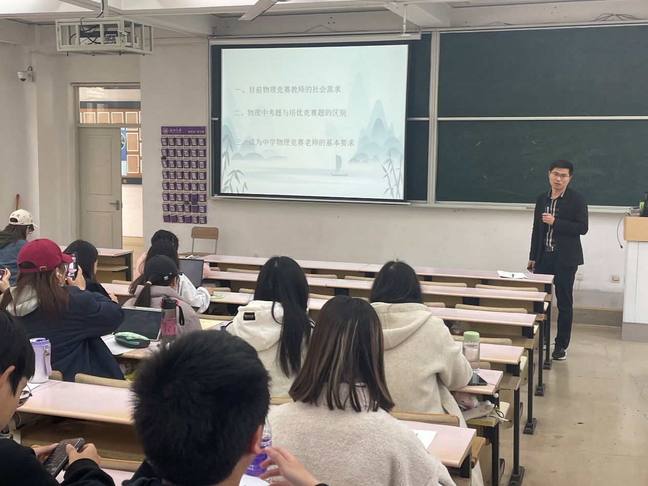讲座尾声,丁老师详细阐述了成为物理竞赛教师的必备素质与发展路径,为有志者提供清晰的成长蓝图。同学们纷纷表示,丁老师的讲座让他们对于物理竞赛有了全新的认识和理解。多位同学表示自己想要把物理竞赛教师作为职业发展目标。未来,37000gcom威尼斯也将进一步完善学生培养与支持机制,为有意从事竞赛教学的学生提供系统化培养路径。