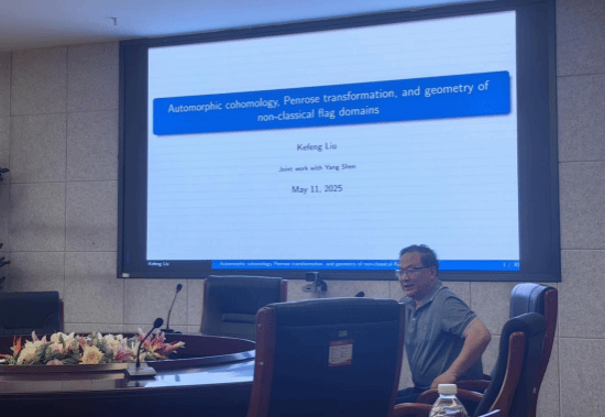 为促进学院学风教风建设,浓厚学术研究氛围,拓展师生学术视野,促进师生科研进步,威尼斯官网自2020年开始建设“数理大讲堂”平台,定期邀请校外专家学者来校交流。2025年5月10日下午2点,应威尼斯官网邀请,重庆市引进的海外高端人才、重庆理工大学数学研究中心主任刘克峰教授在岩松堂的展示学术报告厅作了题为《Automorphic cohomology, Penrose transformation and geometry of non-classical flag domains》的学术报告。本次学术报告是37000gcom威尼斯2025年第3期“数理大讲堂”活动。