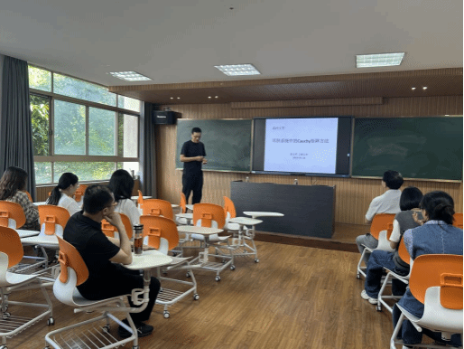Cauchy矩阵方法可以视为由Fokas、Ablowitz、Nijhoff等学者发展起来的直接线性化方法的副产品,现在已经发展成为一种构造、研究以及求解可积方程的一种直接方法。这一方法依托于常见的Sylvester(矩阵)方程AM+MB=C以及必要的色散关系。报告中,张大军教授从Rank-1 Sylvester方程的显示通解,KdV、KP和AKNS三类Sylvester方程对应的可积系统,以及若干应用举例等方面为我们详细介绍了Cauchy矩阵方法。并在最后与在座学者进行了积极地探讨,促进我校学术积极性。