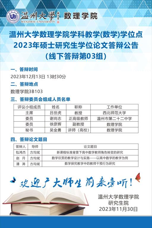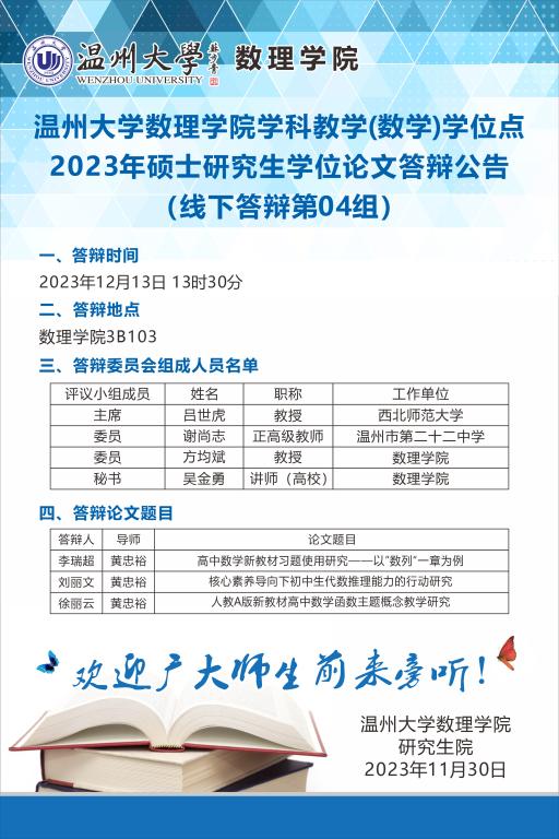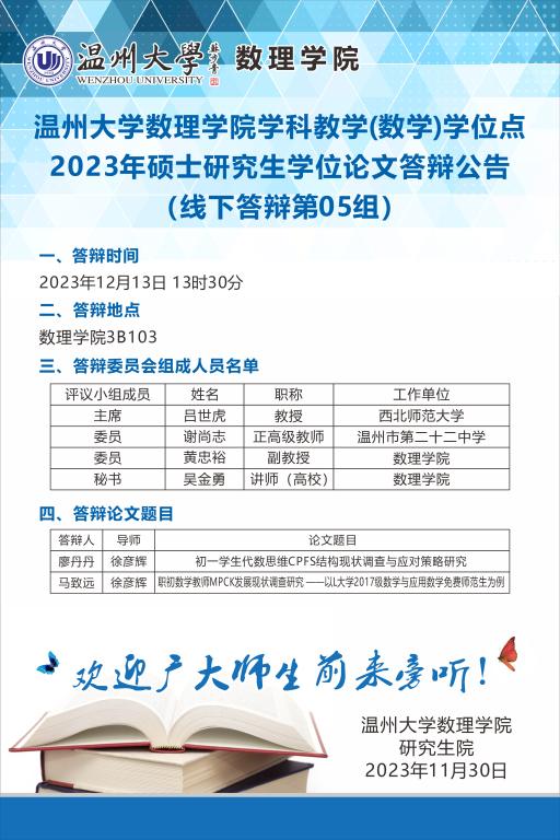37000gcom威尼斯学科教学(数学)学位点2023年硕士研究生学位论文答辩公告