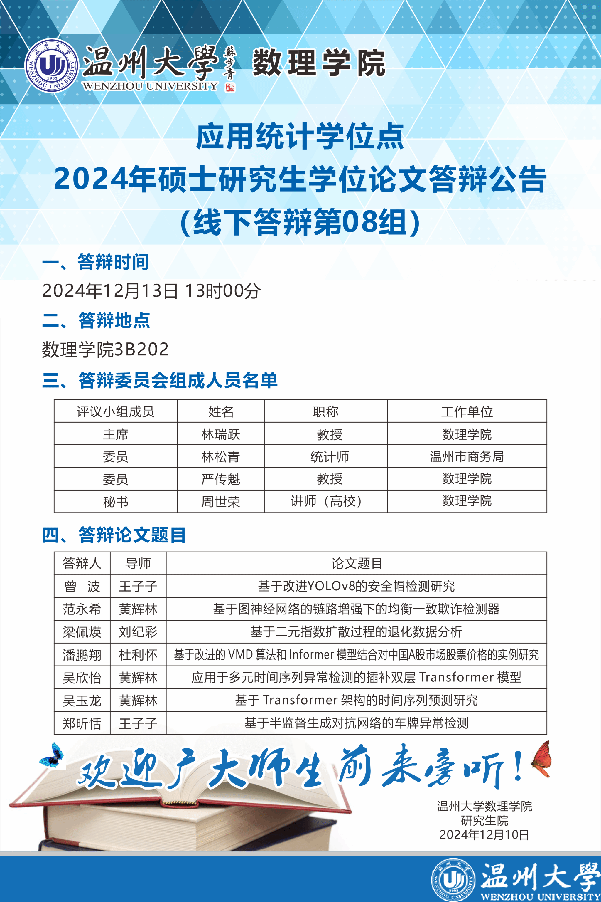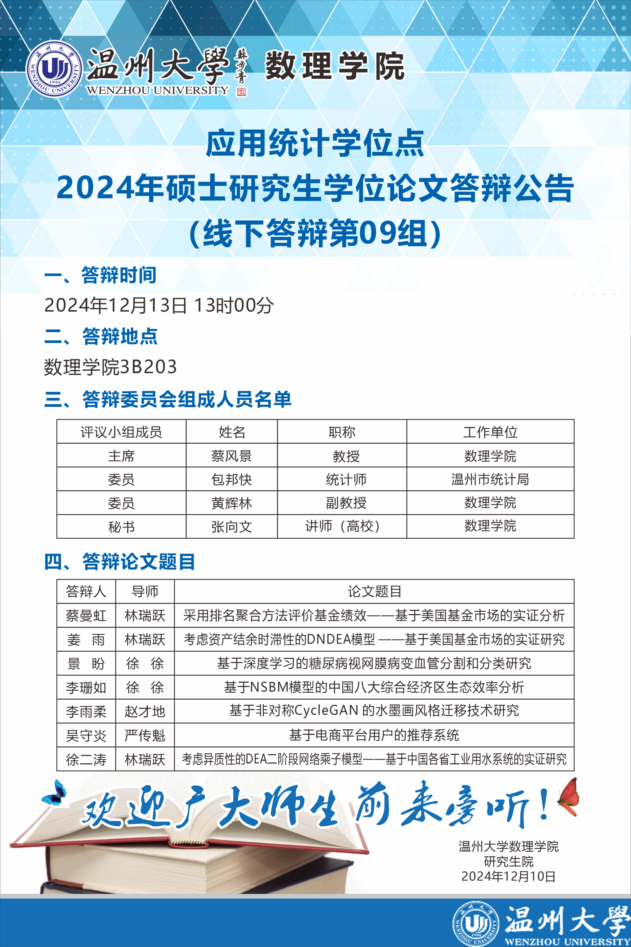 应用统计学位点2024年硕士研究生学位论文答辩公告
