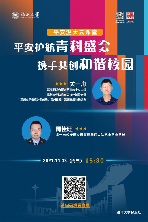 (一)集中收看《平安温大云课堂》,组织班级同学通过扫描海报中的二维码进入在线直播课堂。