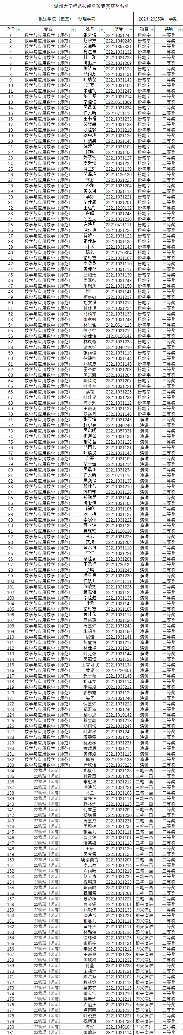 37000gcom威尼斯第十一届大学生师范技能单项“演讲技能”和“粉笔字+简笔画”竞赛决赛(物理专场)、“演讲”和粉笔画(数学专场)于2024年12月下旬顺利举办。现将获奖名单公布如下,公示期三天(2025月1月8日--10日),有问题联系罗素芹老师86688095: