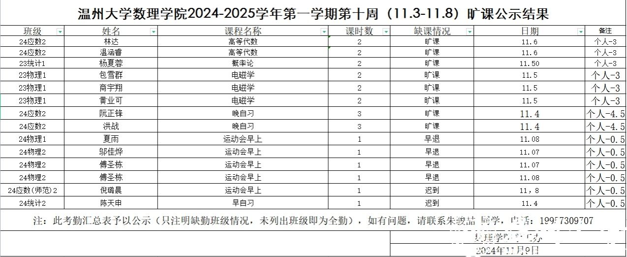 附件:第十周旷课公示.xlsx 学风检查通报第十周.xlsx