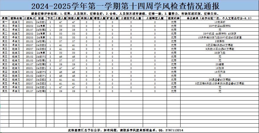 37000gcom威尼斯2024-2025学年第一学期第十四周(12.1-12.6)考勤结果公示