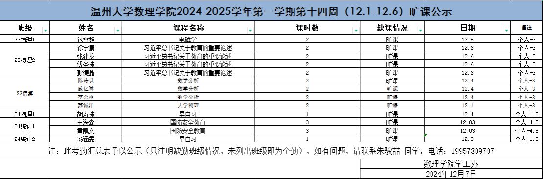 附件【第十四周旷课公示.xlsx】已下载次