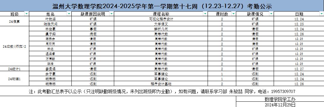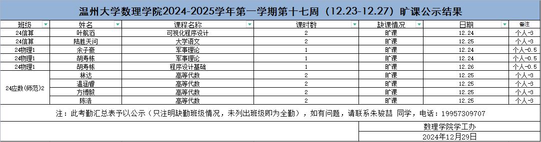 附件:第十七周旷课公示.xlsx 第十七周考勤表.xlsx