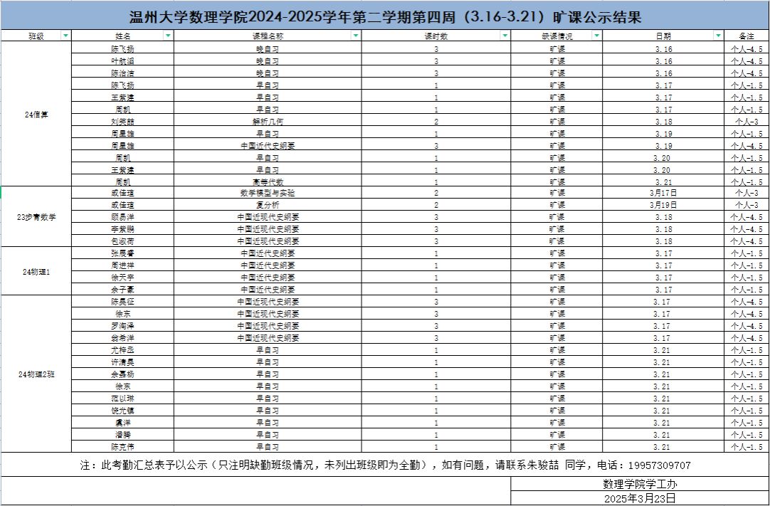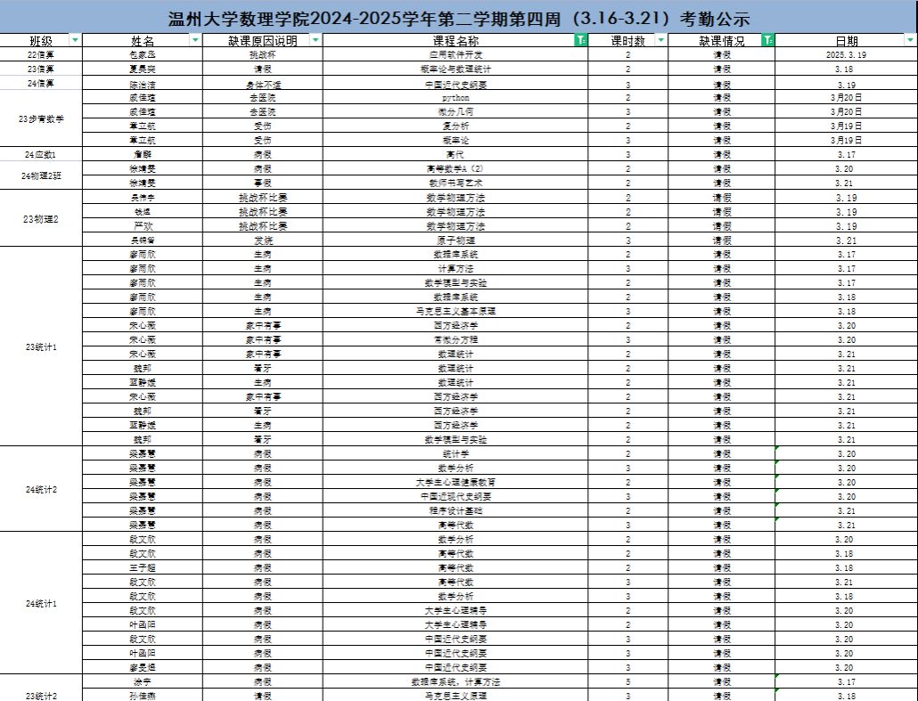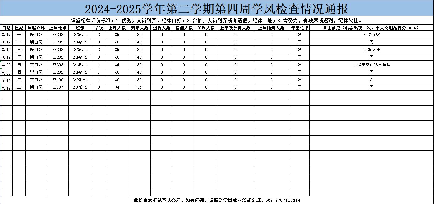 37000gcom威尼斯2024-2025学年第二学期第四周(3.16-3.21)考勤结果公示