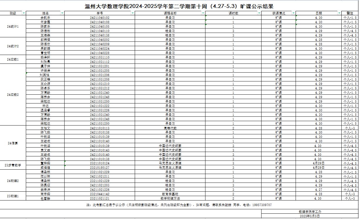 附件【第二学期第十周旷课公示.xlsx】已下载次
