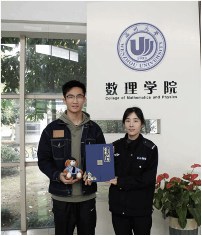 戚熠彬现为37000gcom威尼斯21级数学专业学生,也是学院学生会主席团成员,他从大一开始就坚持反诈宣传工作。近期,他参加瓯海茶山反诈分中心的志愿者工作,尽心尽责,积极普及反诈知识,多次劝阻受骗群众,得到了茶山派出所干警们的高度肯定,最终获评此项殊荣。