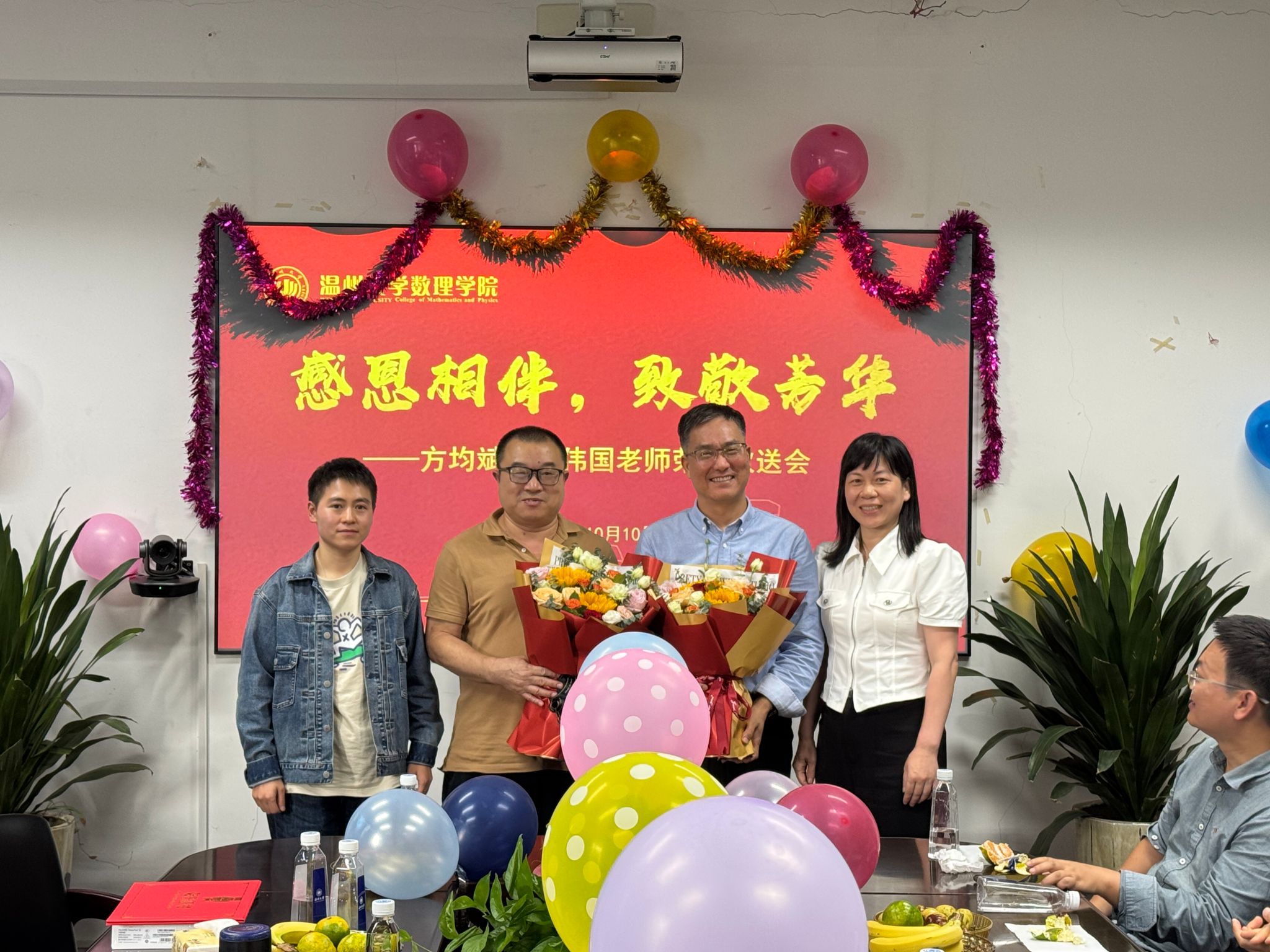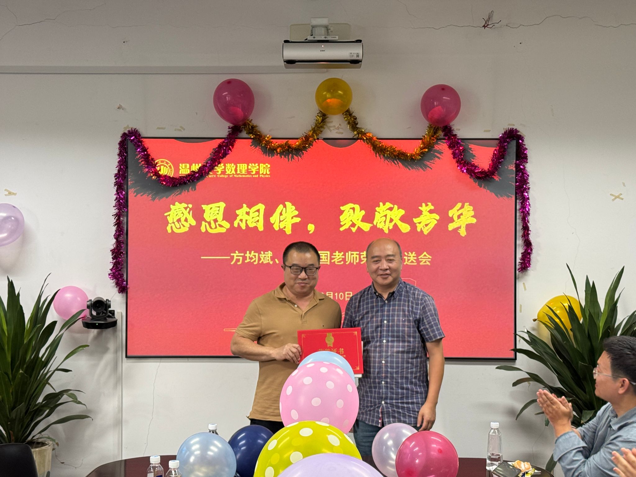 “方老师是我的‘亲老师’,本科期间,印象最深刻的是他经常6:30就到校指导我们师范技能,这对我影响很大,让我有能力走向更大更好的舞台,法国博士毕业后,我终于又有机会回到母校,继续接受方老师的教导……”10月10日,在中华传统佳节重阳节到来之际,一场温馨而又庄重的荣退欢送会在37000gcom威尼斯会议室举行,数学系老师潘琼琼向即将退休的恩师方均斌送上鲜花时,这样感慨道。