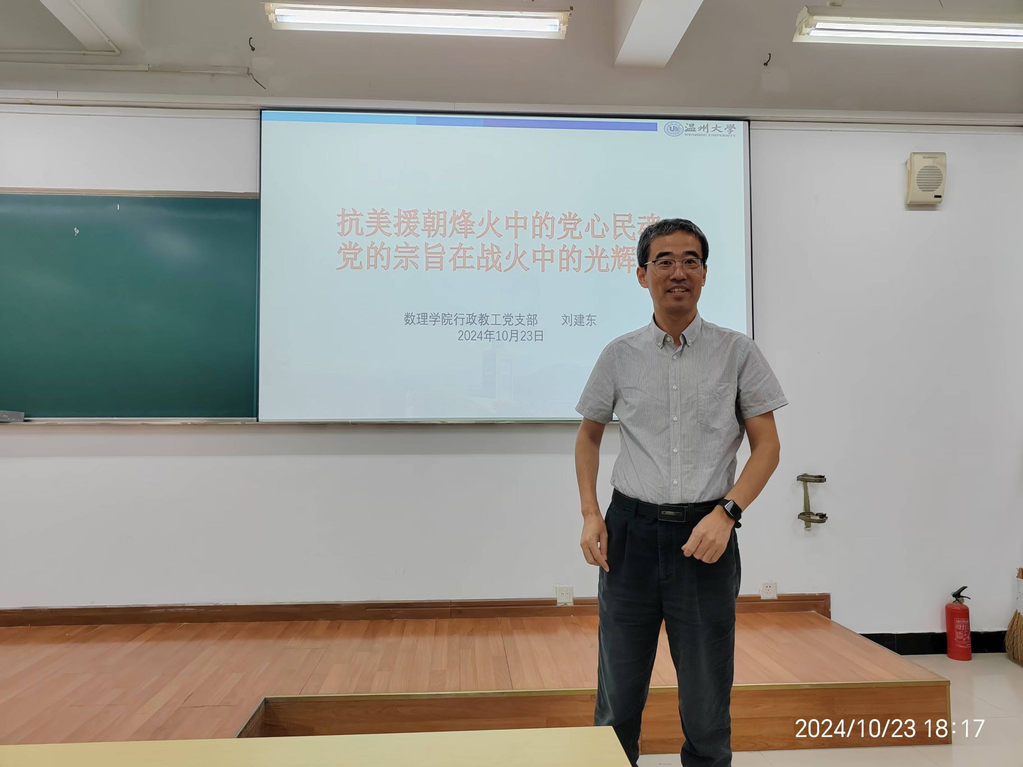 10月23日晚,学院专职组织员刘建东老师为同学们上了一堂生动的党课。党课全面深入地阐述了“抗美援朝烽火中的党心民魂:党的宗旨在战火中的光辉实践”这一主题,不仅有助于同学们更好地了解历史,更激发了大家的爱国情怀。党课后,学生们纷纷表示,要继承和发扬老一辈革命家的光荣传统,为实现中华民族的伟大复兴而不懈奋斗。
